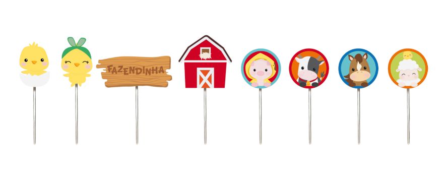 Pick Decorativo - Sortido - Festa Fazendinha - 12 unidades - Cromus - Rizzo