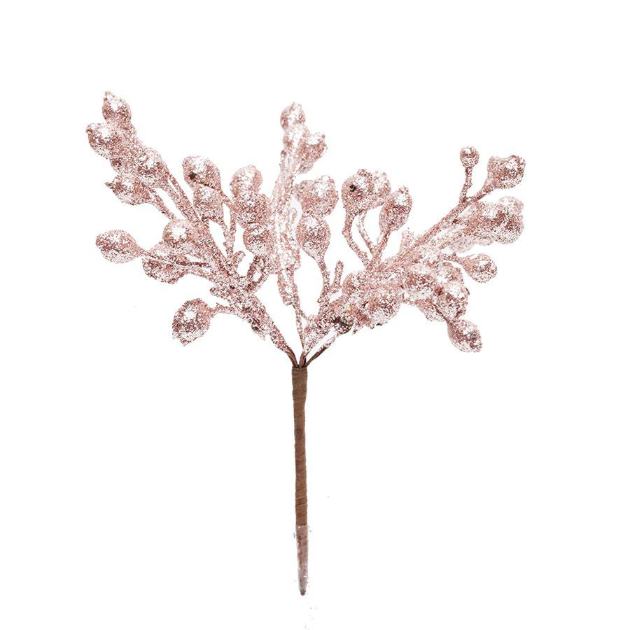 Pick Galho Decorativo - Frutas Rose Gold com Glitter - 15cm - 01 unidade - Cromus Natal - Rizzo