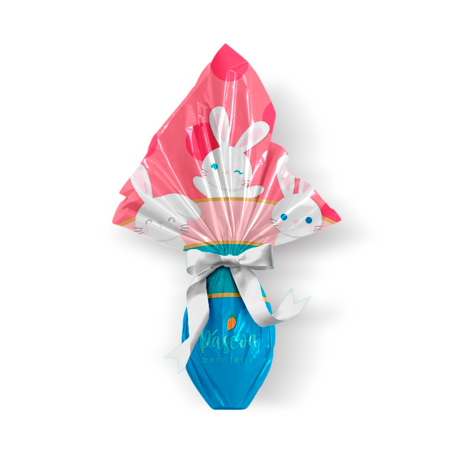 Saco Express 24x24cm para Ovos de 100g a 150g - Coelhinho Rosa - 05 unidades - Cromus Páscoa - Rizzo