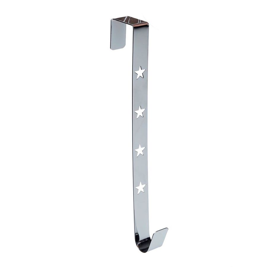 O suporte contém estrelas vazadas pelo seu comprimento da cor prata , e possuí uma curvatura na ponta para colocar a guirlanda, e outro gancho na ponta para colocar na porta.