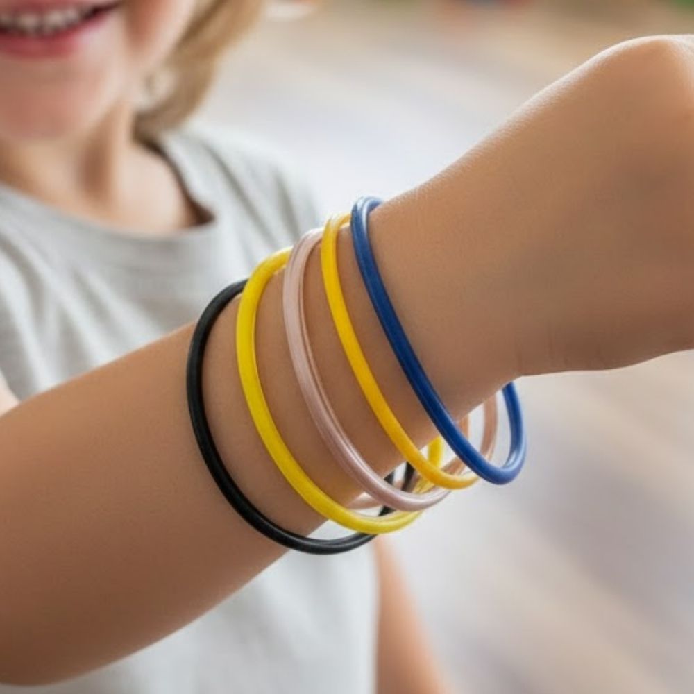 O kit conta com 10 unidades de pulseiras sortidas, ideais para distribuir em festas, escolas ou ações promocionais. As cores são SORTIDAS e enviadas de forma aleatória. Não é possível escolher, separar ou trocar as cores.