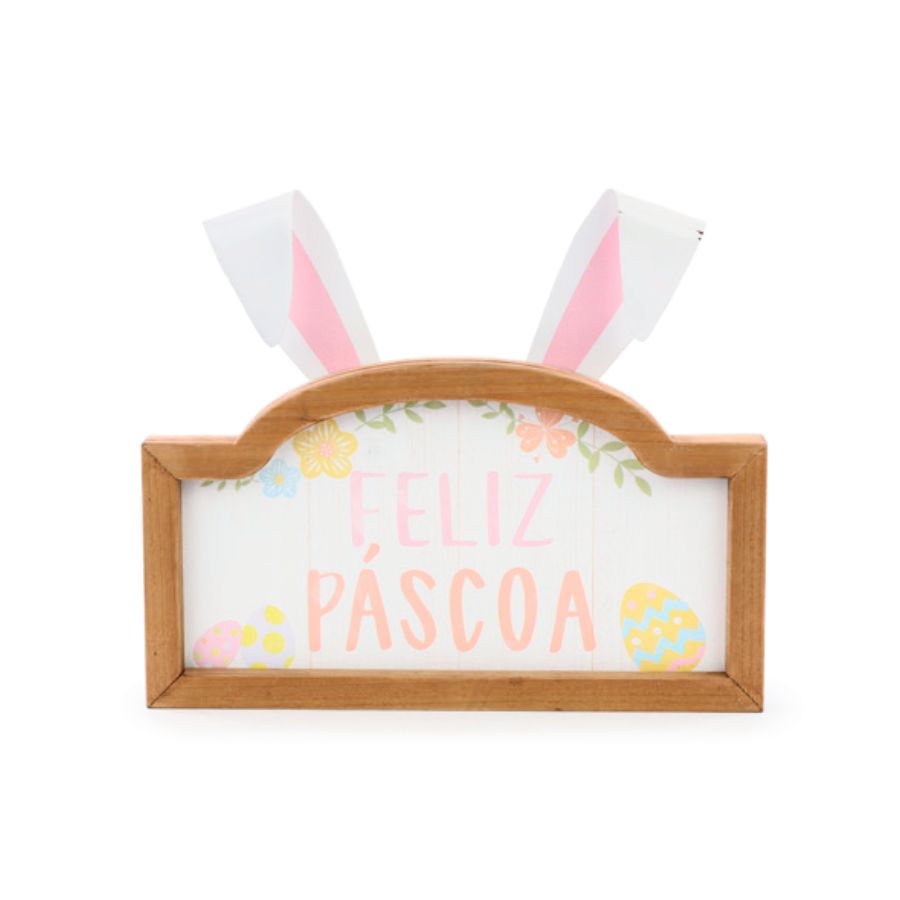 O Quadro Retangular de Madeira e Metal - "Feliz Páscoa" com Orelhas - 28x24,5cm é uma peça encantadora que traz uma mensagem festiva e acolhedora para a sua decoração de Páscoa. Com a frase "Feliz Páscoa" em metal e delicadas orelhas, ele transmite o espírito da Páscoa de uma forma alegre e criativa.
