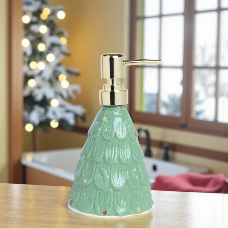 A Saboneteira de Cerâmica Árvore de Natal Verde e Ouro 17,5x10cm é funcional, charmosa e versátil, ideal para decorar banheiros, mesas e composições natalinas com estilo e espírito festivo.