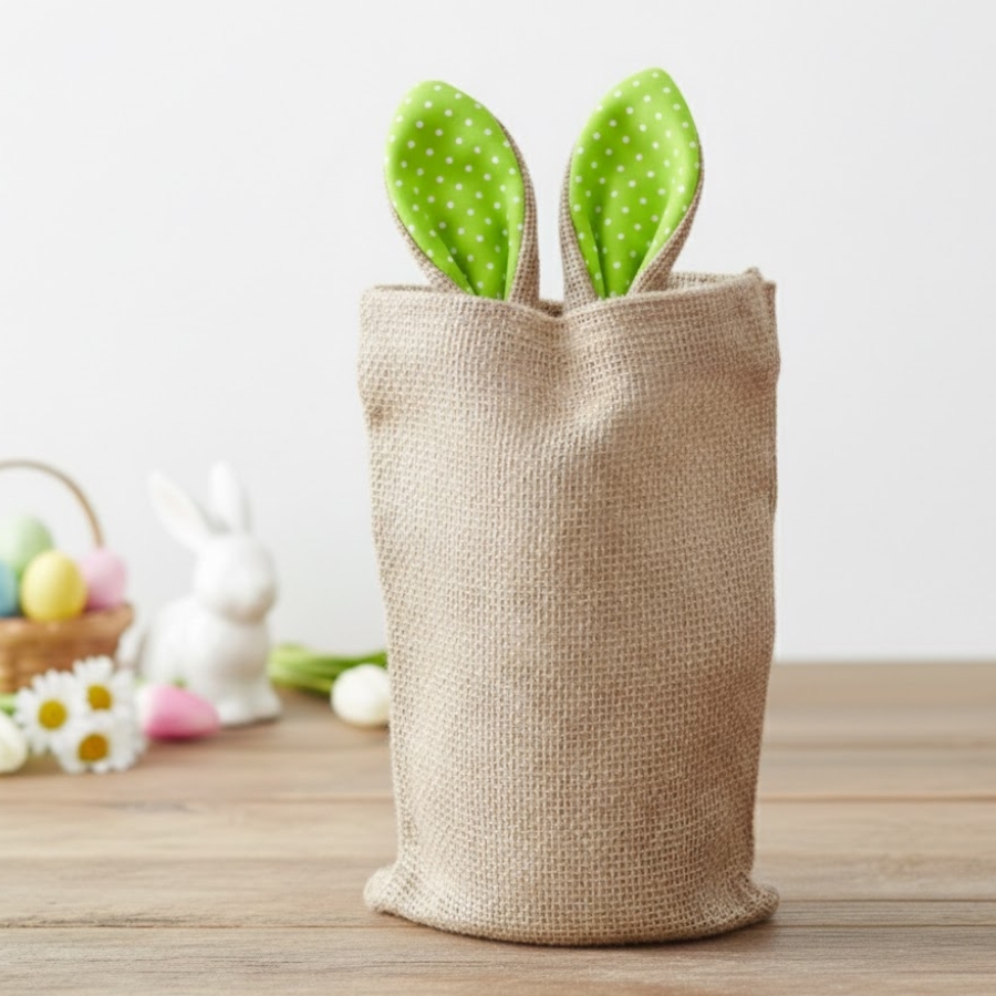Indicado para lojistas, artesãos e consumidores finais, este saco de juta resolve a necessidade de embalar produtos de forma funcional e com apelo visual diferenciado. O Saco de Juta de Páscoa com Orelha Verde Poá Branco facilita a montagem de kits e lembrancinhas, melhora a percepção de valor do presente e torna a entrega mais especial e profissional.