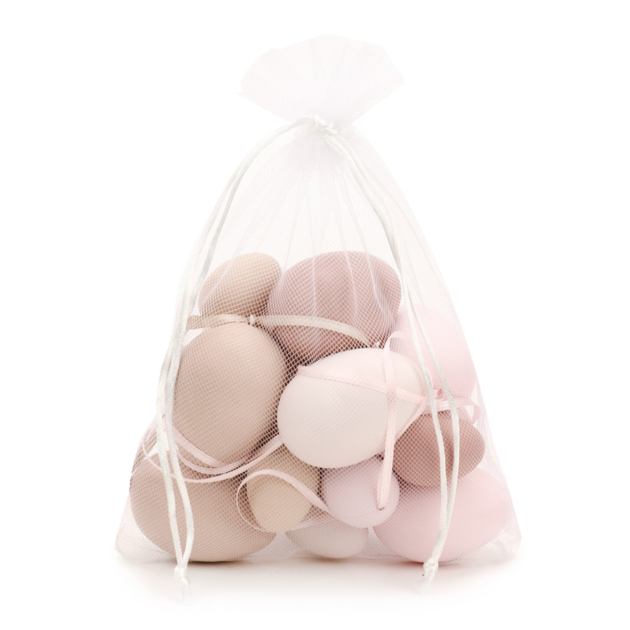 Jogo de ovos de páscoa decorativos para pendurar nas cores nude, rosa e branco