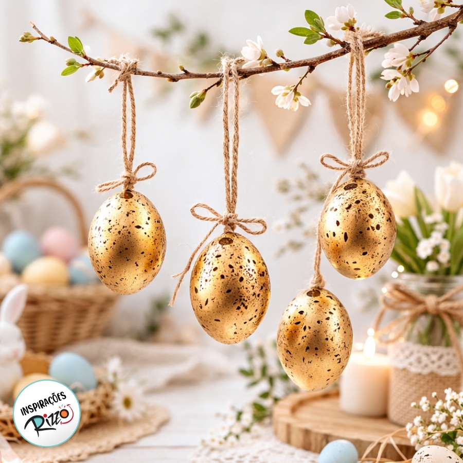 Saco de Ovos de Galinha Sortidos Dourado e Marrom Páscoa - 1 unidade Pacote com 9 unidades - Cromus - Rizzo Embalagens