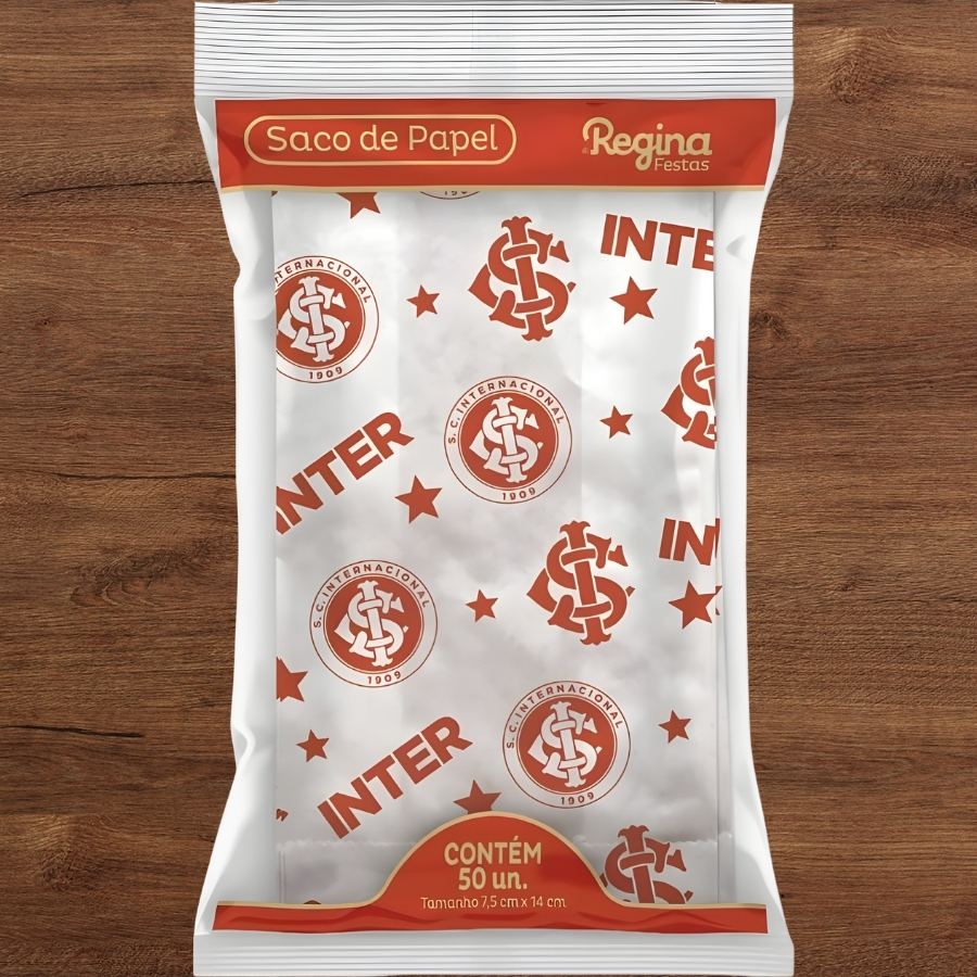 O Saco de Papel Internacional 7,5x14cm é ideal para embalar produtos, lembrancinhas ou brindes de maneira prática e temática. Com tamanho compacto, ele se adapta facilmente a itens pequenos, oferecendo uma solução eficiente para torcedores, organizadores de festas e lojistas que desejam unir funcionalidade e identidade visual do clube em embalagens personalizadas.