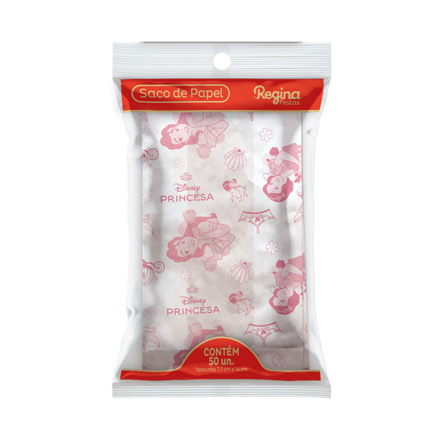 Encante suas convidadas com nossos sacos de papel temáticos das Princesas da Disney! Perfeitos para lembrancinhas, eles trazem a magia e a elegância das princesas mais queridas para a sua festa.