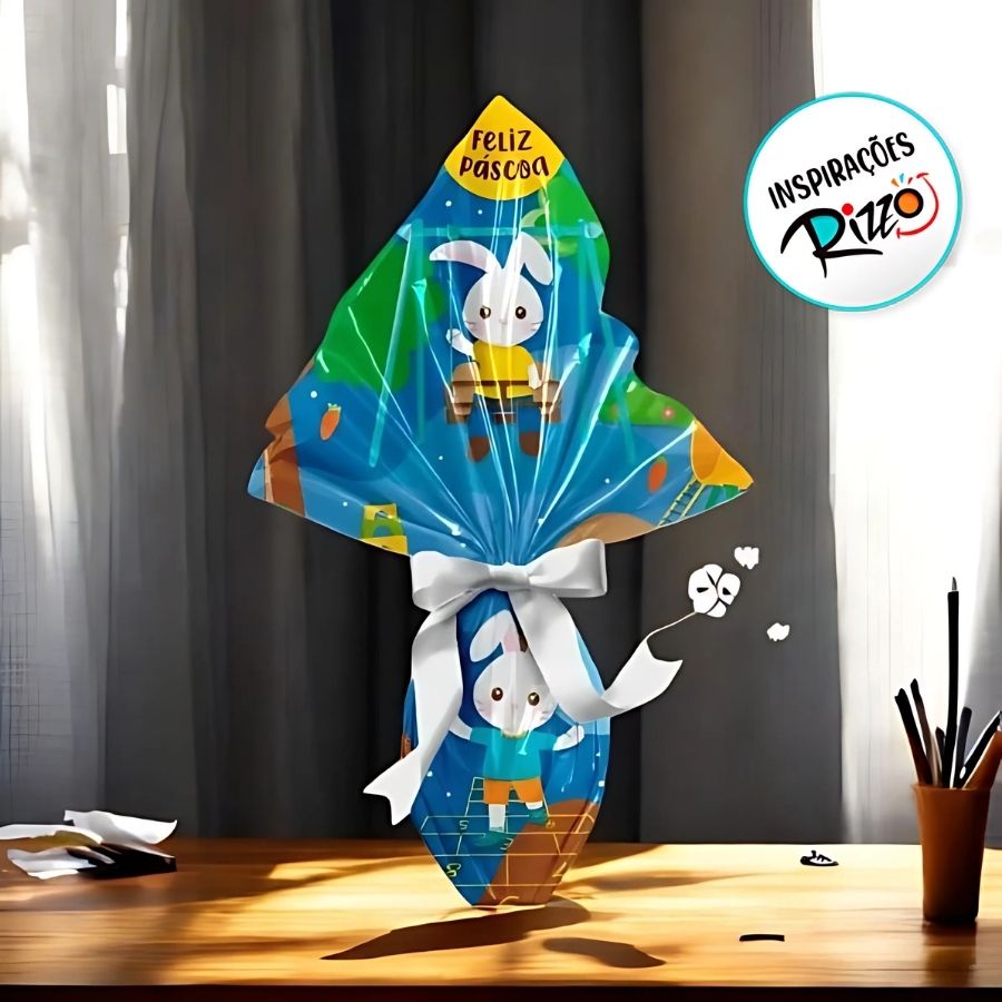 O Saco Express Parquinho Azul é uma escolha encantadora para embalar ovos de Páscoa de 50g a 100g. Sua estampa temática com tons de azul e ilustrações de parquinhos transmite um ar lúdico e divertido, perfeito para surpreender crianças e adultos nesta data especial.