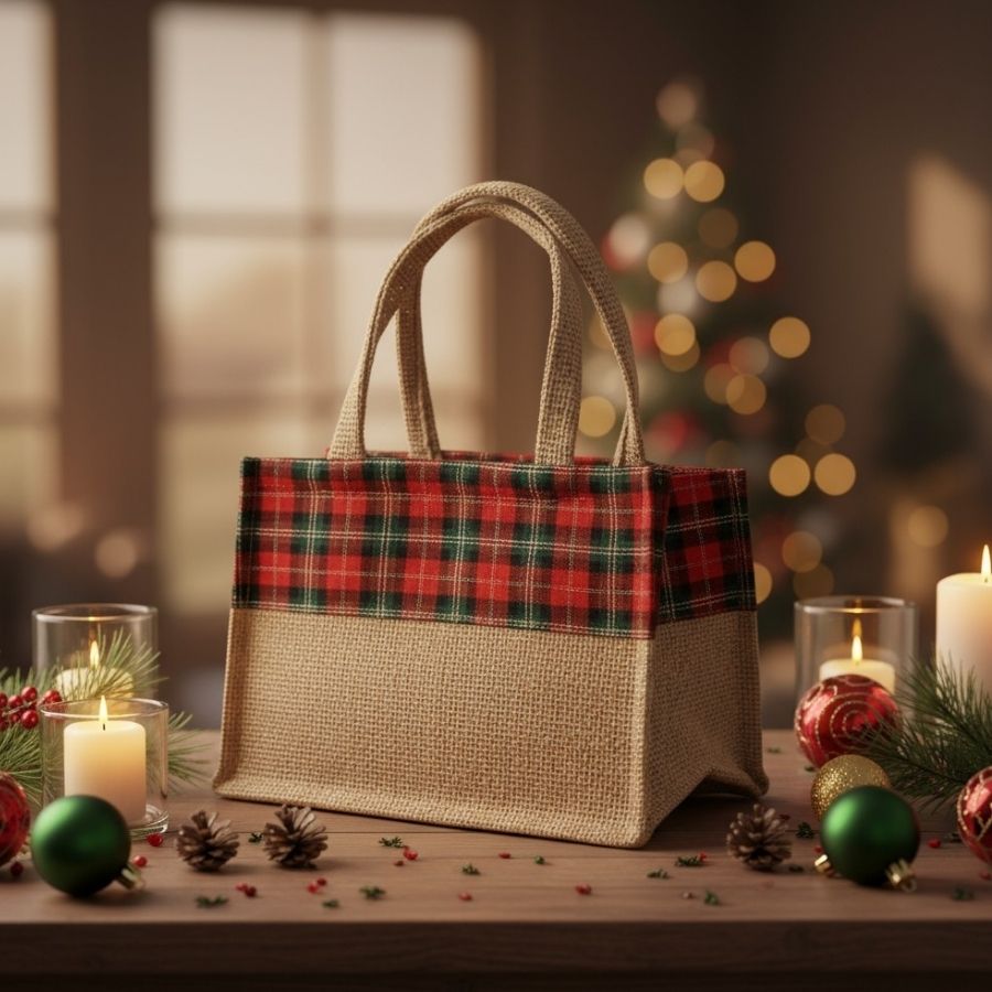 A Sacola de Juta de Natal - Xadrez Vermelho e Verde é perfeita para presentes natalinos, lembrancinhas ou pequenas embalagens artesanais. Produzida em juta resistente, apresenta estampa xadrez clássica nas cores vermelho e verde, trazendo charme e tradição para as festividades de Natal.