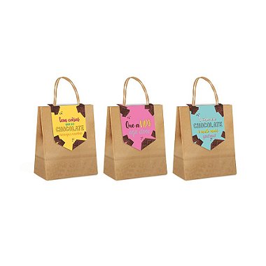 Sacola de Papel com Fechamento Doce Chocolate Sortido 21,5x15x8cm - 10 unidades - Cromus Páscoa - Rizzo Embalagens