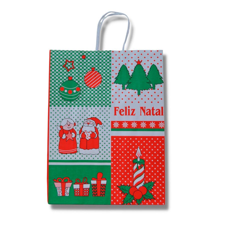 Com alças resistentes, a sacola é prática e fácil de transportar, tornando-a ideal para presentes de diferentes tamanhos e formatos. Além de sua funcionalidade, a sacola contribui para uma apresentação encantadora, transformando a simples entrega de presentes em um gesto significativo durante o Natal. A Sacola Kraft "Feliz Natal" é uma opção versátil que combina praticidade e estilo, proporcionando uma maneira encantadora de expressar seus desejos de felicidade e celebração durante as festividades natalinas.
