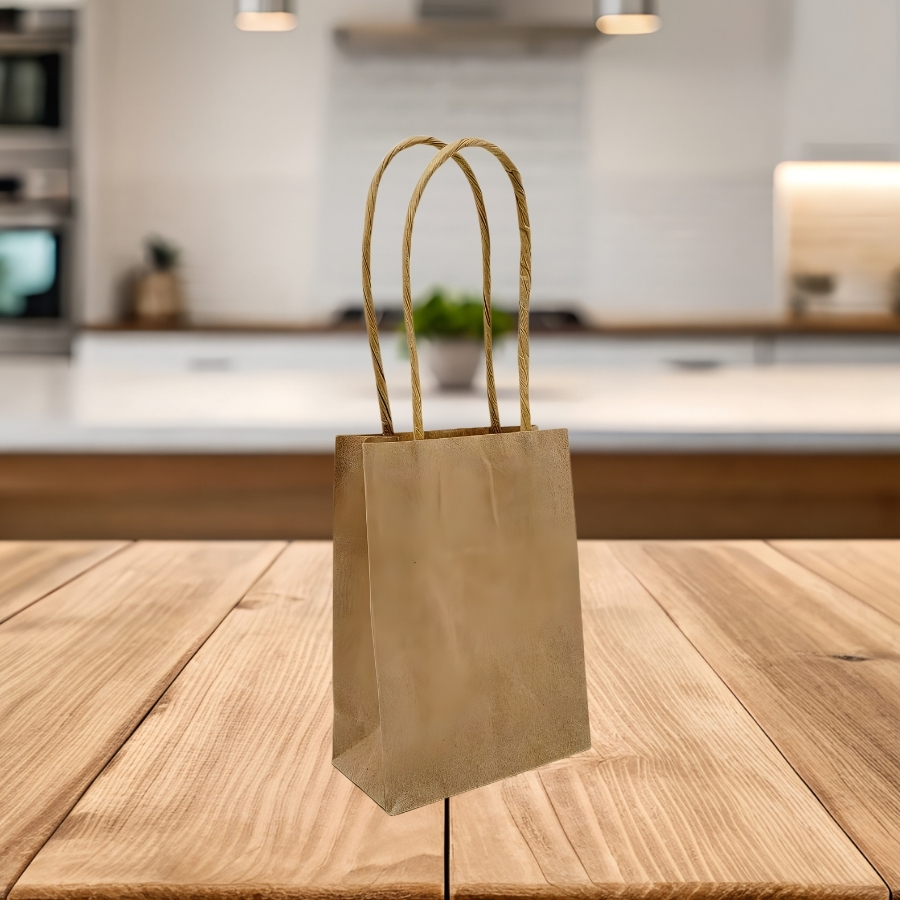 A Sacola de Papel Kraft Mini - 11x8x4cm é fabricada em papel kraft resistente, proporcionando segurança para itens leves e pequenos. Seu tamanho compacto a torna ideal para presentes mínimos, brindes e produtos artesanais, sendo uma alternativa ecológica e versátil para embalagens no varejo e em eventos.