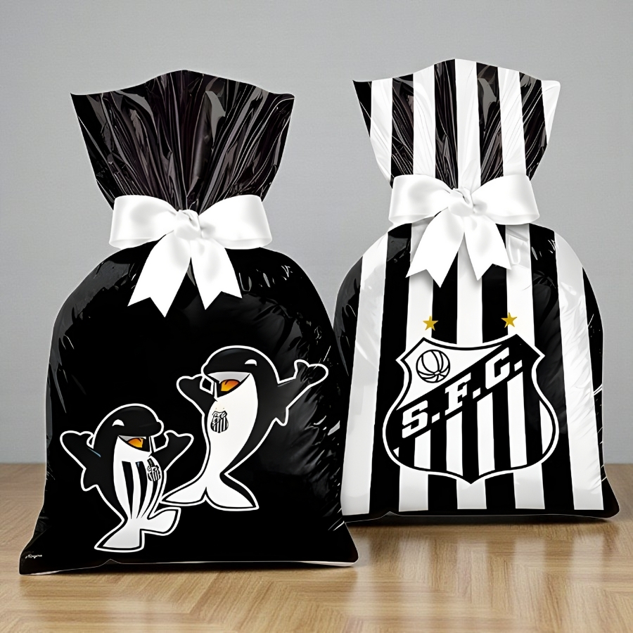 Perfeita para eventos esportivos, festas temáticas e uso diário, a sacola proporciona resistência e praticidade. Ela permite embalar lembrancinhas, brindes ou presentes de forma elegante, reforçando o tema Santos e garantindo que a decoração ou identidade do time esteja presente em cada detalhe.