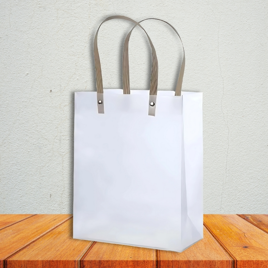 Sacola fosca transparente com alça de fibra, resistente e charmosa, ideal para embalar produtos e lembranças com estilo e sofisticação.