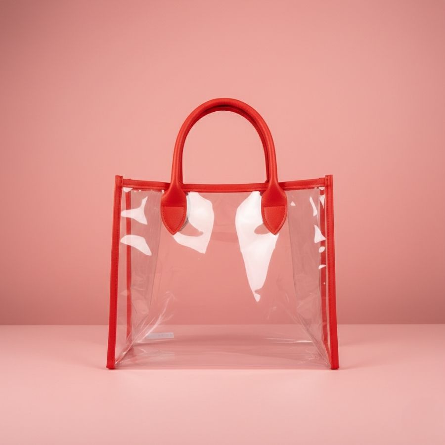 Seu diferencial está na estrutura reforçada aliada ao design transparente, que valoriza o conteúdo e facilita a composição de kits e presentes. A alça em PU vermelho agrega impacto visual e sofisticação, tornando a sacola uma excelente opção para produtos personalizados, brindes e organização. A versatilidade do modelo permite aplicações comerciais diversas, elevando a percepção de valor do trabalho artesanal ou profissional com uma apresentação moderna e elegante.