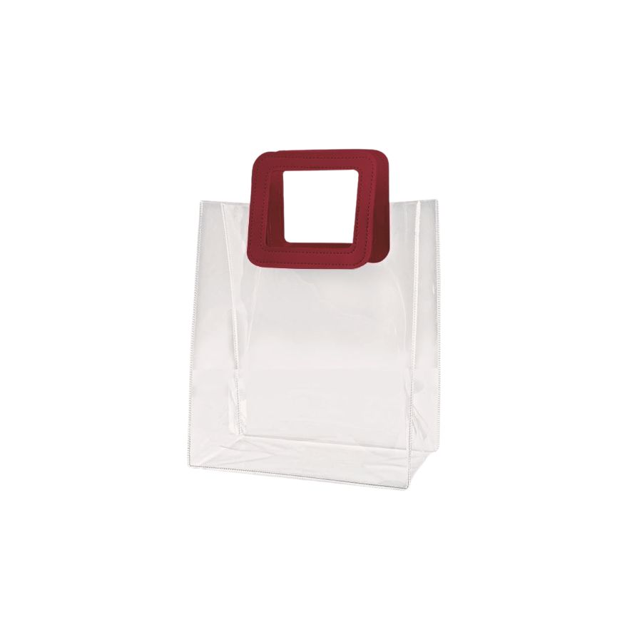 Sacola Quadrada Transparente de Plástico com alça quadrada de couro