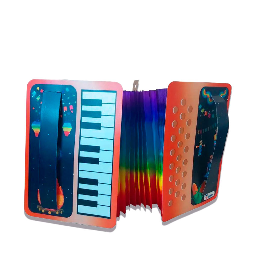 Um pacote contendo uma sanfona de papel de Festa Junina