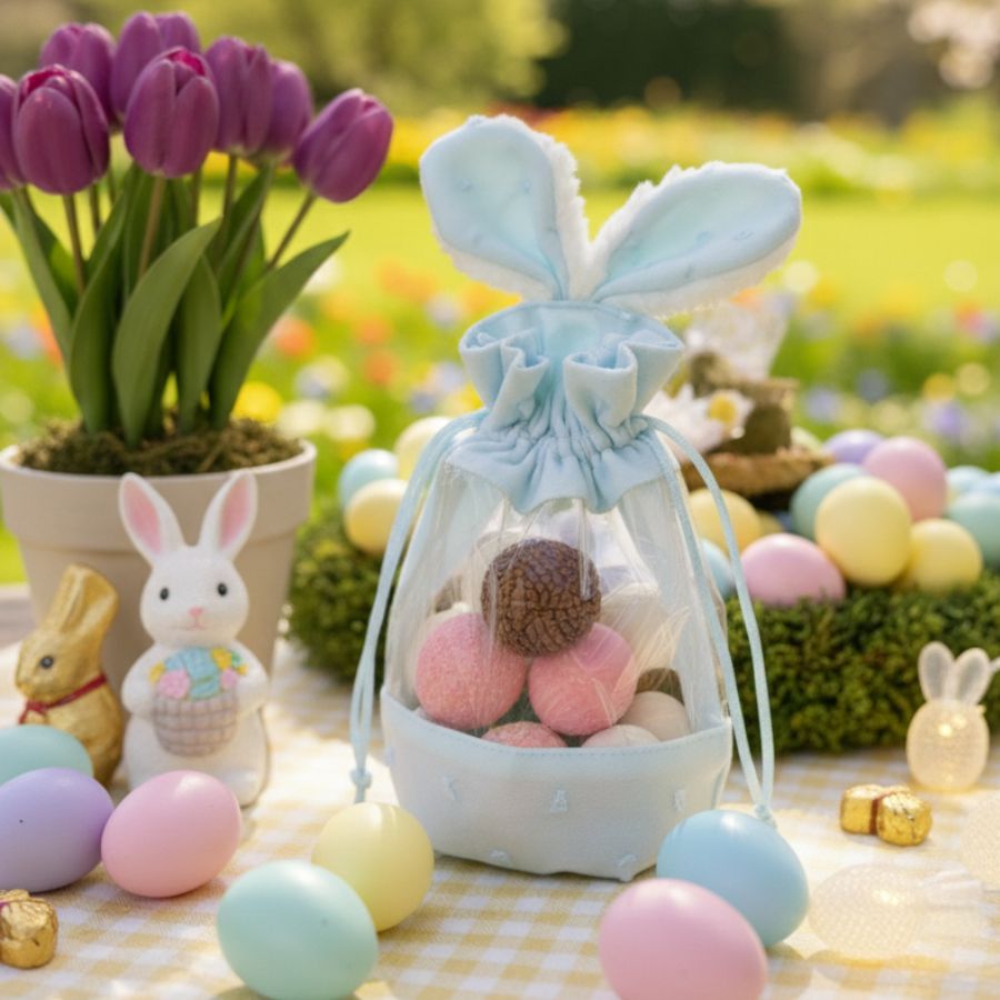 Saquinho de Tecido de Páscoa - Orelha de Coelho - Azul - 18cm - 1 unidade - Rizzo