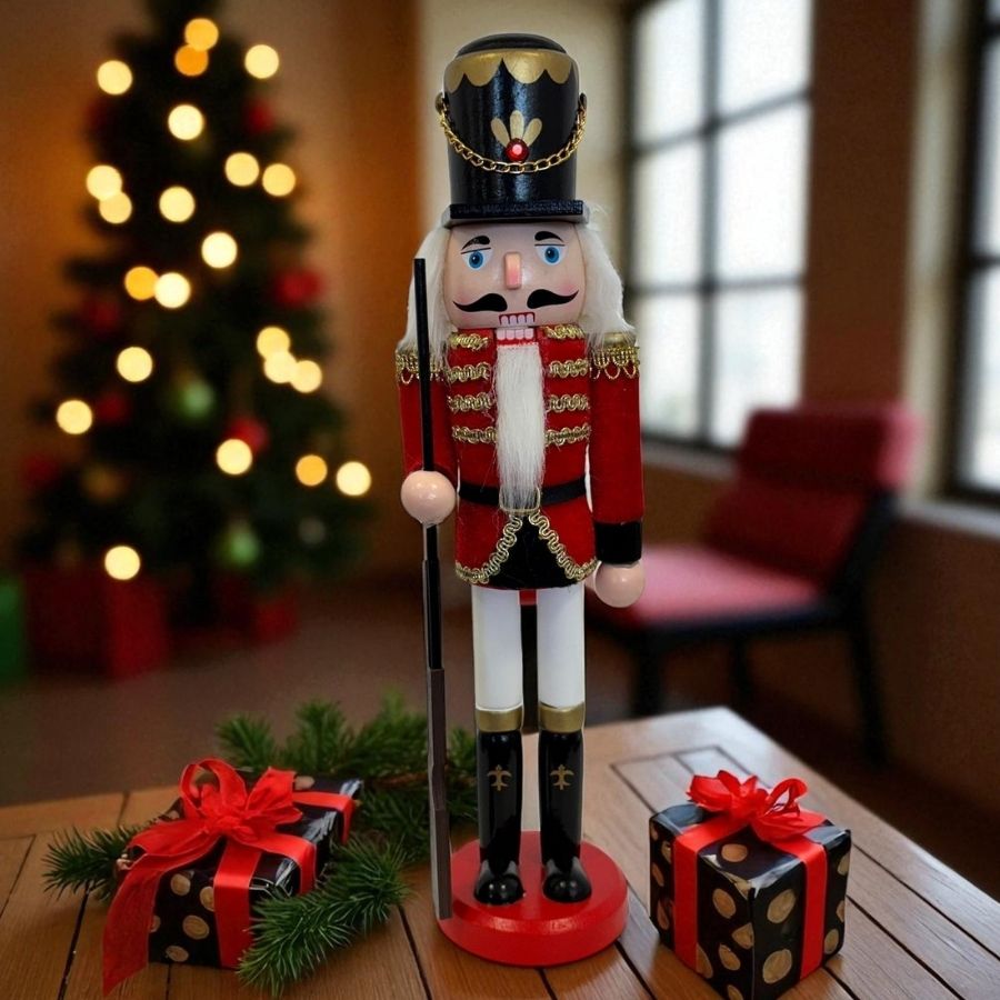 O Soldado de Chumbo de Madeira com Arma 30cm Vermelho e Dourado é um enfeite natalino clássico, elegante e versátil, perfeito para árvores, mesas e ambientes, trazendo tradição, charme e espírito festivo ao Natal.