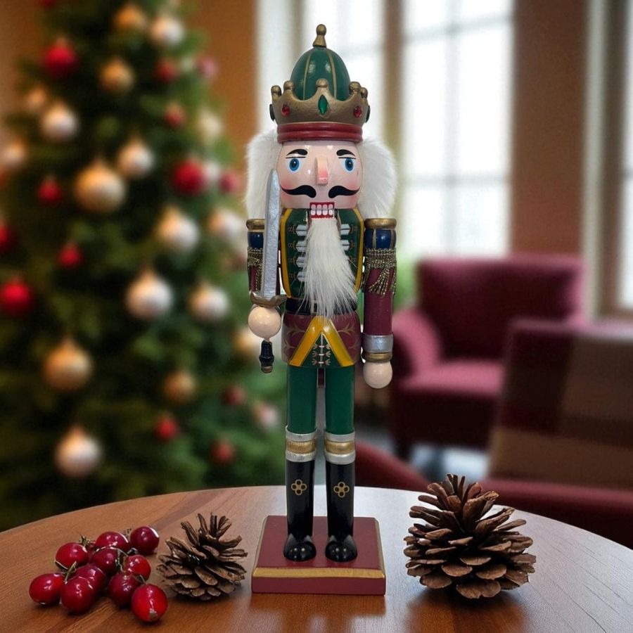 O Soldado de Chumbo de Madeira com Espada 30cm Vermelho e Verde é um enfeite natalino clássico, versátil e sofisticado, ideal para árvores, mesas e ambientes, trazendo tradição, charme e espírito festivo ao Natal.