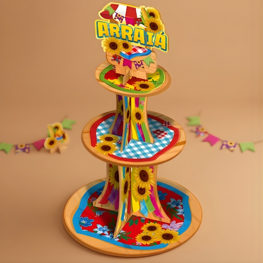 O Suporte Para Doces Arraiá é um item decorativo ideal para compor mesas temáticas em festas juninas. Com visual inspirado no clima alegre dos arraiais, ele ajuda a organizar e destacar doces durante a celebração, contribuindo para uma apresentação mais atrativa e festiva.