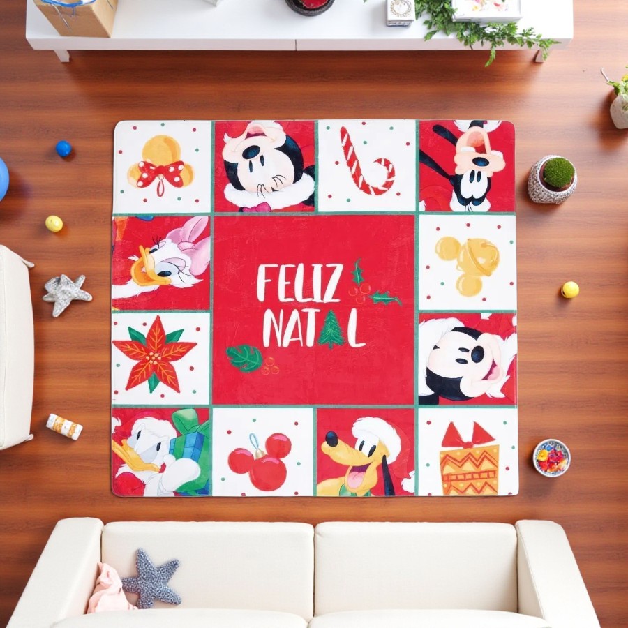 O tapete Turma do Mickey Disney de Natal é o toque perfeito para deixar o ambiente festivo, acolhedor e cheio de encanto. Com formato quadrado e medindo 150x150cm, apresenta uma estampa natalina inspirada na Turma do Mickey Disney, em tons vermelhos, verdes e dourados, que remetem à magia e alegria do Natal. Ideal para ser usado em salas, quartos, áreas de festa ou ao redor da árvore, trazendo o espírito natalino de forma divertida e charmosa.
