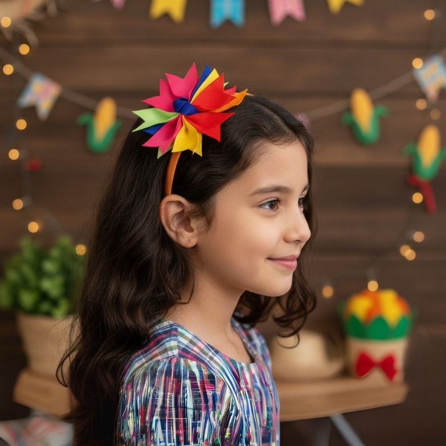 Prática e confortável, a tiara com laço é ideal para crianças e adultos, podendo ser combinada com vestidos, camisas xadrez, chapéus caipiras e outros acessórios juninos. Além de complementar o traje, também pode ser utilizada como lembrancinha ou item decorativo em festas e eventos temáticos.