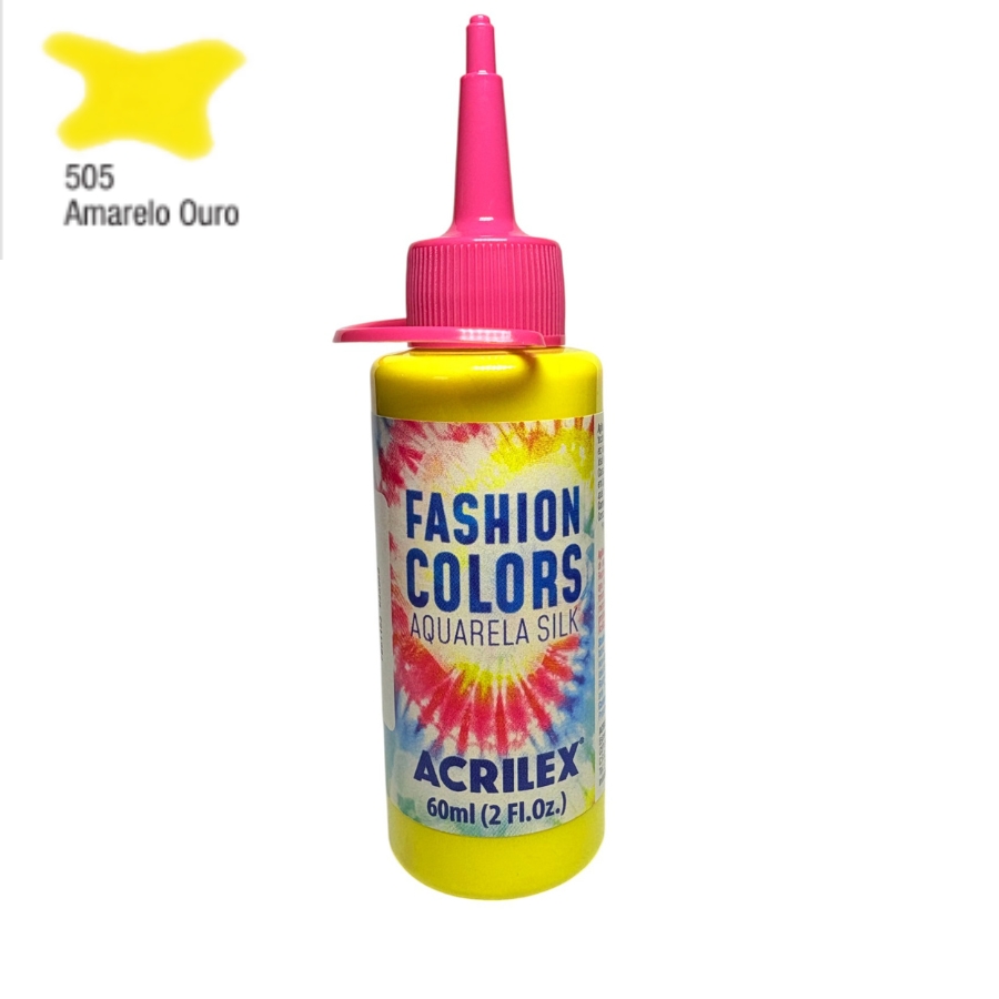 A Tinta para Tecido Fashion Color Aquarela Silk da Acrilex é ideal para pinturas delicadas em tecidos finos como seda e algodão com fibras naturais. Com fórmula líquida, pode ser aplicada com pincel, aerografia ou outros processos, diretamente no tecido ou com o uso do Delineador Têxtil Incolor Acrilex para delimitar áreas.