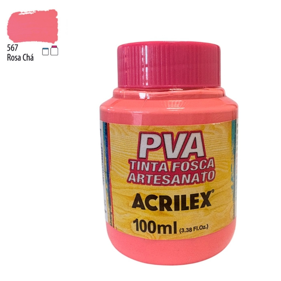 A Tinta Fosca para Artesanato PVA Acrilex é à base de látex P.V.A., pronta para uso, com secagem rápida e acabamento fosco, ideal para uma variedade de técnicas artesanais. Pode ser aplicada com pincel, esponja ou rolinho de espuma, garantindo excelente cobertura e uniformidade. Indicada para superfícies como madeira, MDF, gesso, cerâmica, cortiça, isopor, papel, palha e PET, sendo que materiais como o PET devem ser previamente preparados com Primer Acrilex.