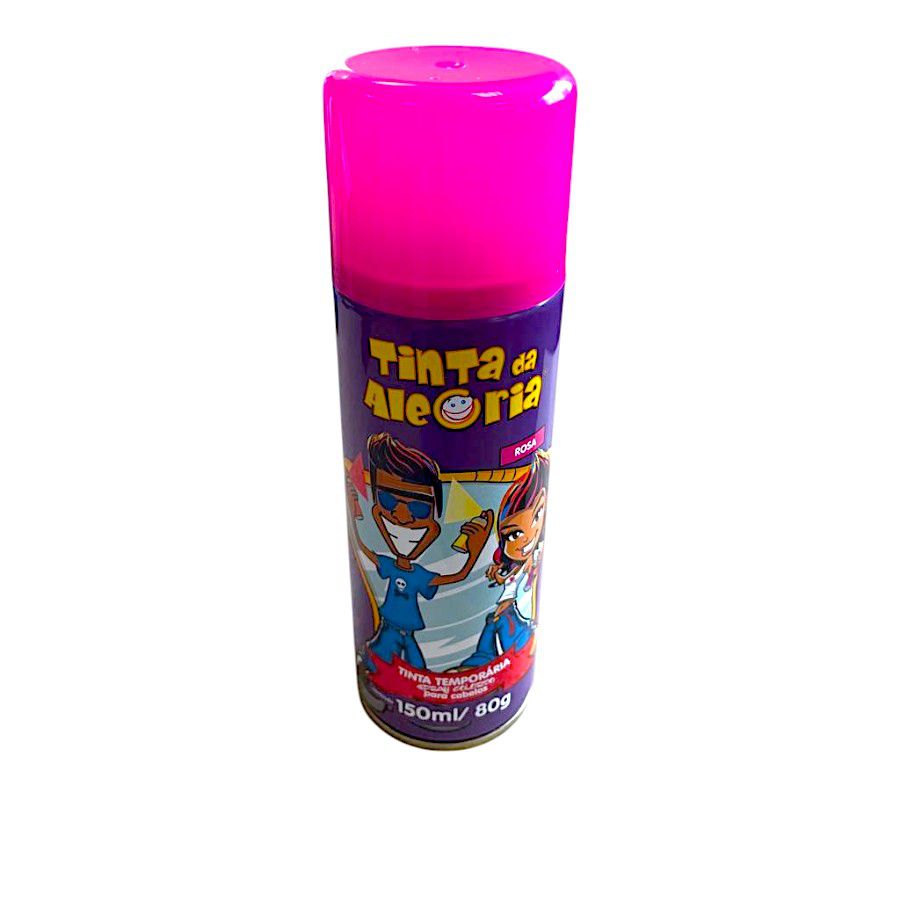 Tinta Spray para Cabelos Tinta da Alegria na cor Rosa, com 150mL. Ideal para colorir temporariamente os fios com um efeito vibrante e divertido.