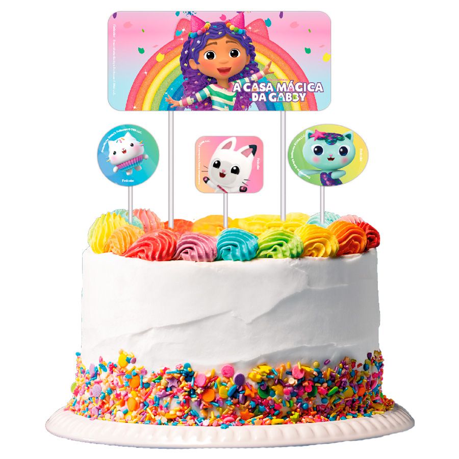 4 Peças de variaveis formas e tamanhos topo para bolo com os personagens do desenho A Casa Magica da Gabby