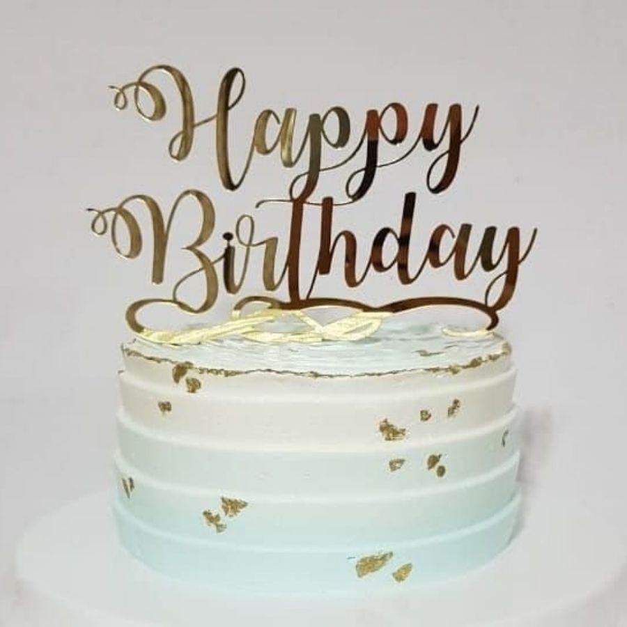 Topo de Bolo Happy Birthday Espelhado Dourado Sonho Fino Rizzo Confeitaria