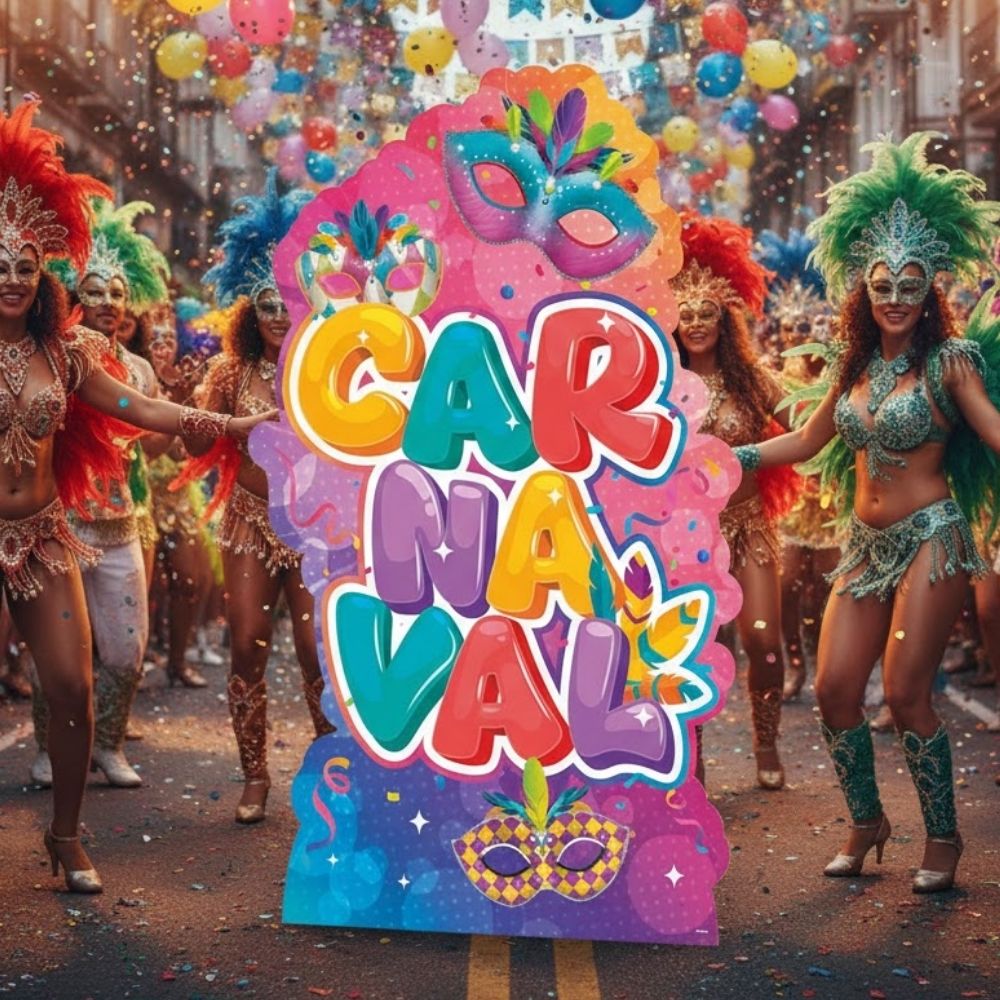 O Totem Decorativo de Carnaval com 94x58cm é ideal para compor um cenário alegre e vibrante. Com a palavra “Carnaval” em destaque, o design é enriquecido com diversas máscaras carnavalescas espalhadas por toda a arte, trazendo movimento, cor e o charme tradicional dos bailes e desfiles.