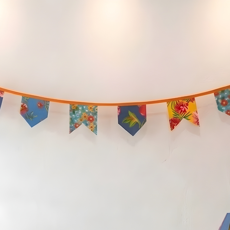 Com 270cm de comprimento e composto por 10 bandeiras, o varal é perfeito para decorar paredes, mesas, entradas ou espaços temáticos. Seu visual colorido contribui para uma composição harmoniosa, deixando o cenário mais atrativo e alinhado à proposta da festa. As estampas de chita são sortidas e podem divergir da foto.